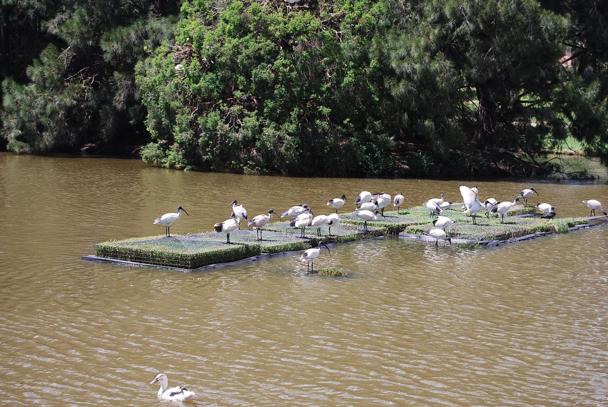 Issues: Submerged anchors haven proven to be problematic. Future installations incorporate shoreline anchoring. Ibis birds were not present for the first 18 months after installation. Recently these birds have moved in and their beaks can penetrate through the mesh cage. A new cage with smaller mesh has been design and is under trial to address Ibis populations. Weed control was not undertaken by Council and Water Couch needs to be managed, in conjunction with the new cage.
